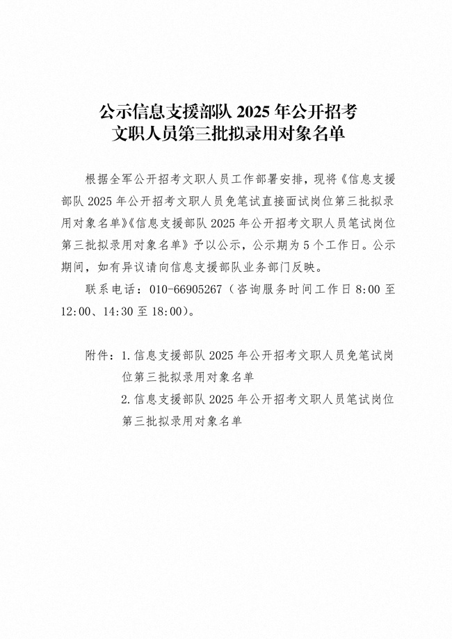 公示信息支援部队2025年公开招考文职人员第三批拟录用对象名单