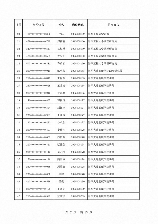公示海军2025年公开招考文职人员