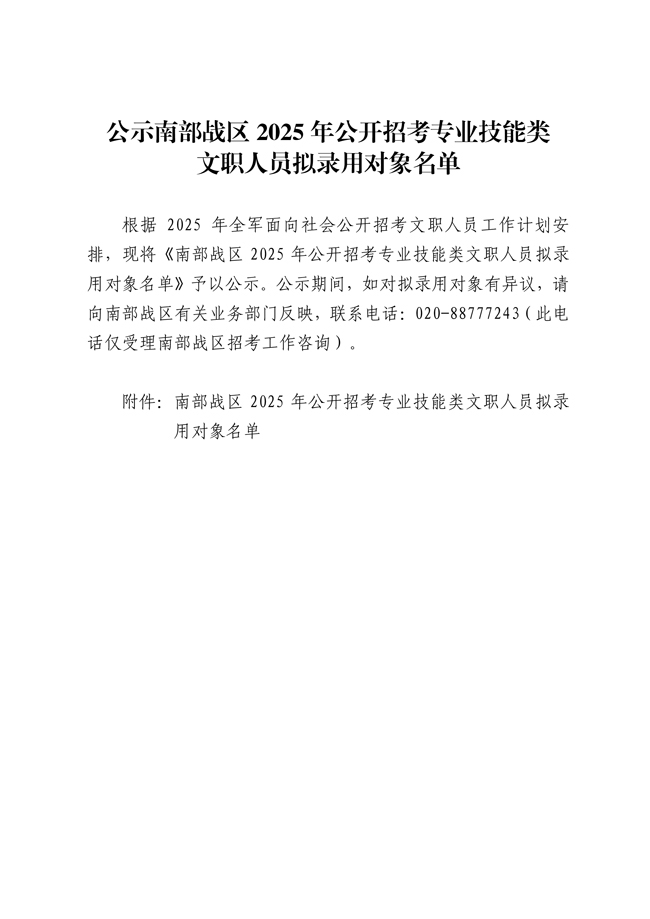 公布军委联合参谋部2023年军队公开招考文职人员免笔试直接参加面试人员名单