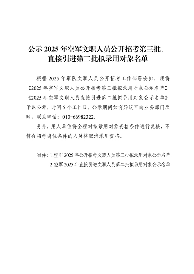 公布空军2023年公开招考文职人员免笔试直接参加面试人员名单